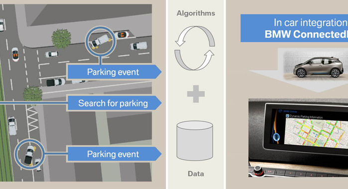 BMW, among the first carmakers to drive the importance of connectivity between cars, drivers and their surroundings with its ConnectedDrive, is further expanding its position as a premium mobility provider. Now, with the Dynamic Parking Prediction research project, the BMW Group is demonstrating a solution that will in future be able to shorten the search for vacant on-street parking, particularly in cities. Together with its partner INRIX, a global provider of transportation intelligence and connected car services, it will present a research prototype of this application at TU-Automotive Detroit (formerly Telematics Detroit), one of the world’s leading connected car fairs, from June 3-4 June 2015, in a BMW i3. Dynamic Parking Prediction is able to predict parking availability using movement data from vehicle fleets.