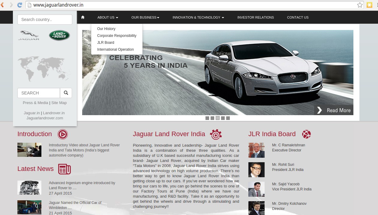Mobilestyx Consulting and Solutions announced Jaguar Land Rover India as their Client. They recently acquired the project of Designing and Developing JLR India Corporate Portal.The complete UI and development was done by Mobilestyx Consulting and Solutions with the support and guidence of JLR India Management and Staff. Mr Sajid Yacoob (JLR India, Vice President India Operations) , Mr. Pankaj Sharma devoted their valuable time and patience during the development of the Website.The site was custom built from scratch with fusing various web technologies, which makes it easy to access and also accessible on multiple platforms including but not limited to latest Andriod and IOS compatible devices.You can visit the site at http://www.jaguarlandrover.in/ |